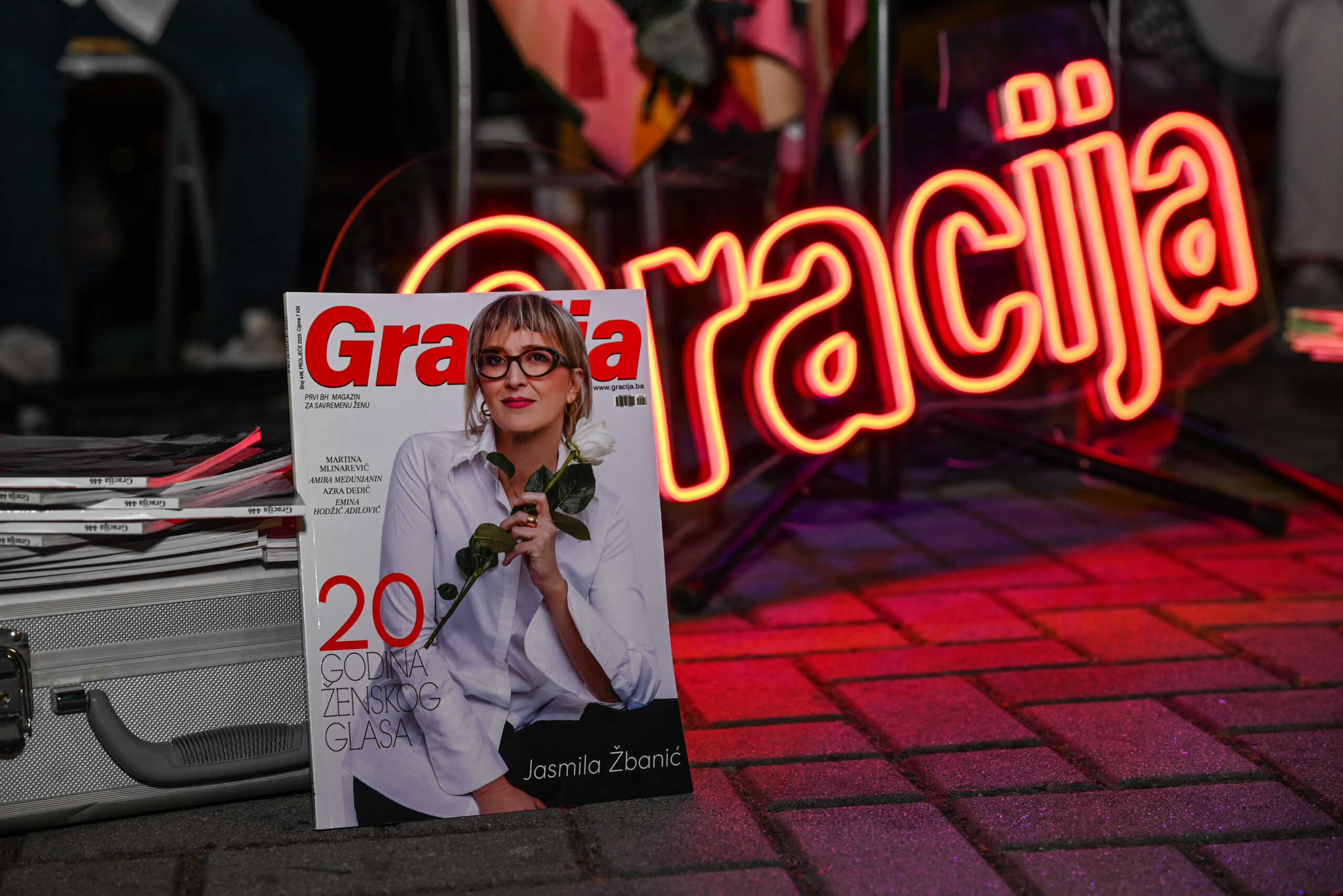 Efekat iznenađenja je bio potpun, emocije na sceni stvarne, a ambijent veličanstven – Amira je u pratnji Alme Abdagić otpjevala pjesmu Alma, kojom nas je počastila i u decembru na Donatorskoj večeri, ali tu nije bio kraj. Gracijina noć se pretvorila u ono što je možda ponajbolje opisala jedna od govornica Festivala i Gracijina prijateljica Una Bejtović: “Napravi mentalni snimak!” govori mi Edina Selesković dok zajedno svojim očima ne vjerujemo u kakvu magiju se pretvorio party Gracije (za koji ne biste vjerovali sta su sve Belma Pećanin i Mersiha Drinjaković preživjele i uradile da se dogodi) za 20 sjajnih godina magazina koji je od početka uz Festival savremene žene, a koji je nemadmašno zatvorio 8. izdanje uz jedinstvenu Amiru Medunjanin koja je potpuno zasluzeno dobila priznanje “Žena inspiracija”!